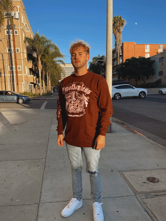 "Protected by Angels" Emotionless Hooded Sweatshirt Brown